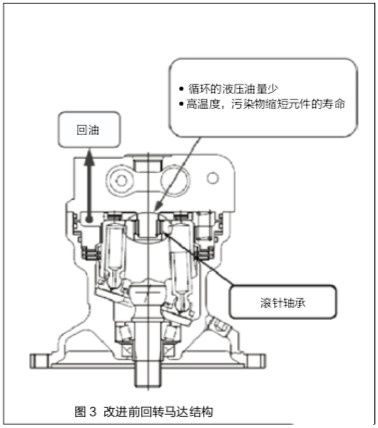 按照以上方法改進(jìn)滾針軸承潤滑潤滑方式后,市場驗證結(jié)果表明,回轉(zhuǎn)馬達(dá)耐用性能得到了大幅度提高,相關(guān)挖掘機(jī)再未出現(xiàn)滾針軸承損壞故障。