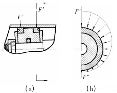 此時(shí),密封件上的變形不等,在密封圈上產(chǎn)生沿周向非均勻分布的徑向力,見上圖(b)。非均勻分布的徑向力使作用在密封圈上的正壓力不等,從而導(dǎo)致密封圈與缸筒內(nèi)表面沿周向產(chǎn)生的摩擦力不等,導(dǎo)致磨損量大小不等,最終造成密封圈沿周向產(chǎn)生非均勻磨損。