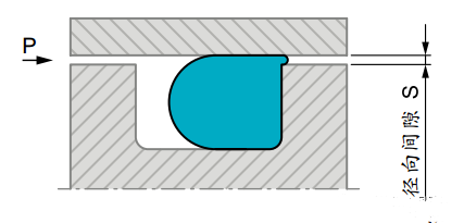 沿著半徑方向的間隙,如下圖所示。在動態(tài)密封時,必須保留一定的最大允許徑向間隙,也就是擠出間隙,但是如果間隙太大,