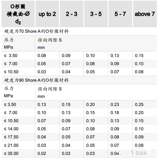 了可允許間隙的建議,表中數(shù)據(jù)來源于特瑞堡密封。它是一個關(guān)于