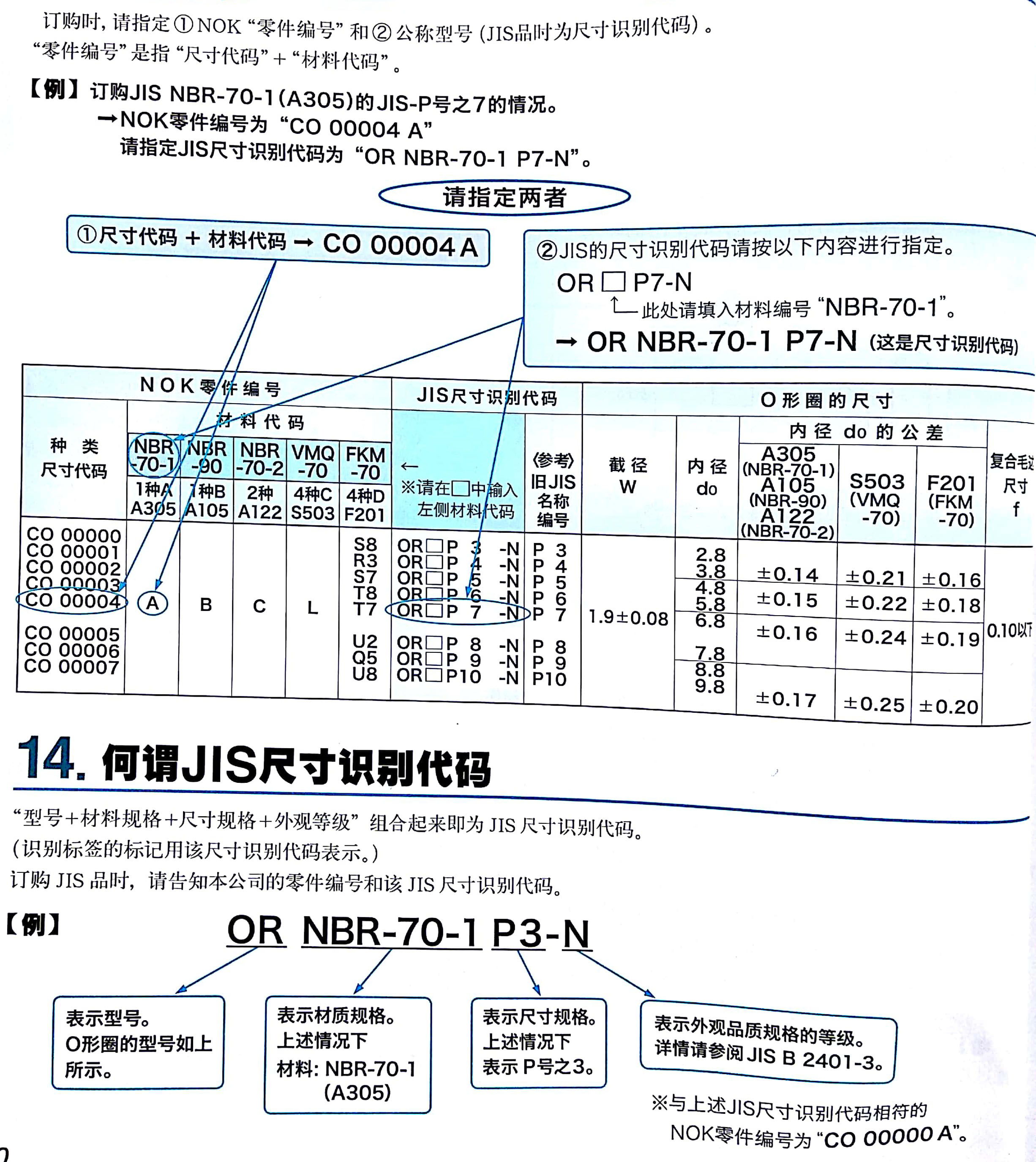 訂購O型圈的時候,可以向廈門三江盛達提NOK O型圈的零件編號和JIS品時的尺寸識別代碼。